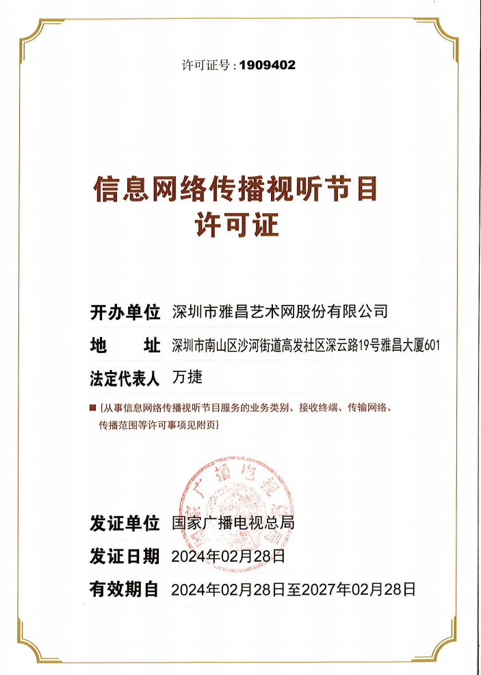 增值電信業(yè)務(wù)經(jīng)營許可證(粵)B2-20030053廣播電視制作經(jīng)營許可證(粵)字第717號企業(yè)網(wǎng)絡(luò)文化經(jīng)營許可證粵網(wǎng)文(2021)1750-217號